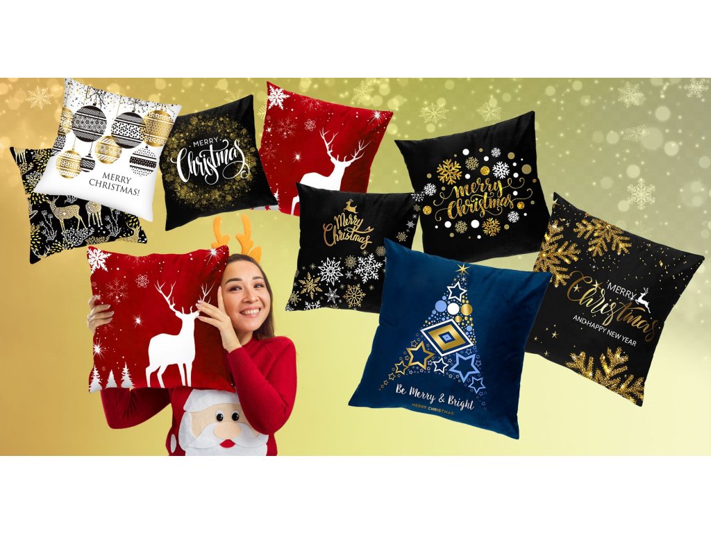 Kolekcia vianočných obliečok na vankúše z jemnej tkaniny, ktorá je mäkká a príjemná na dotyk.