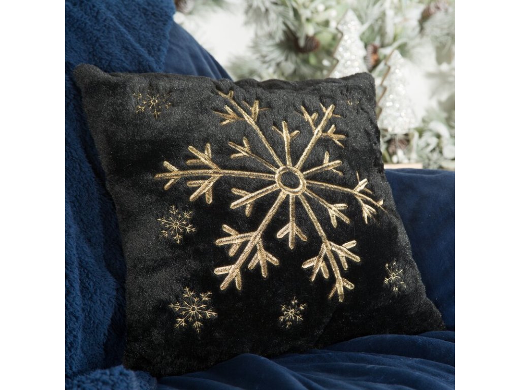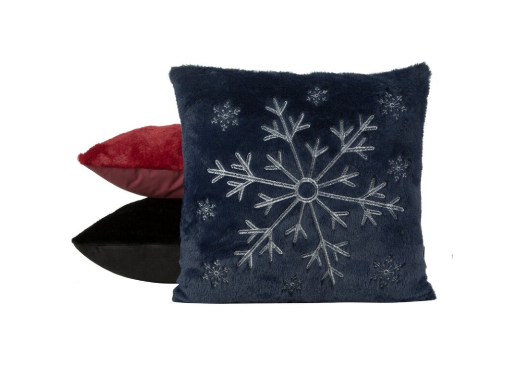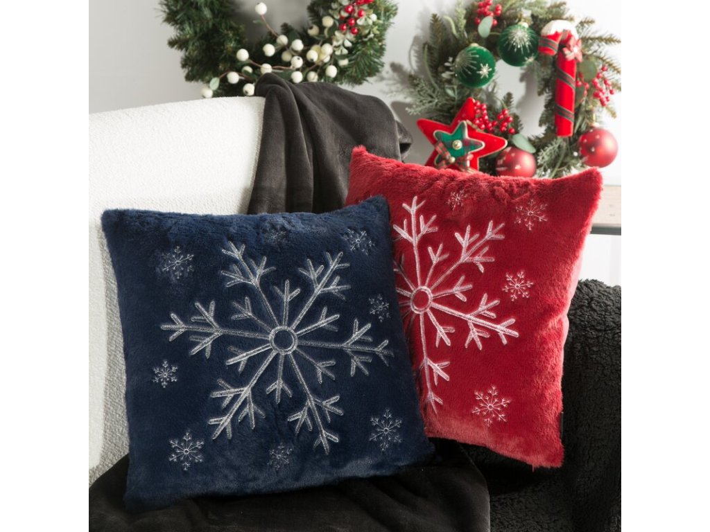 Vianočná dekoračná obliečka na vankúš je zdobená striebornou výšivkou odkazujúcou na blížiace sa Vianoce.