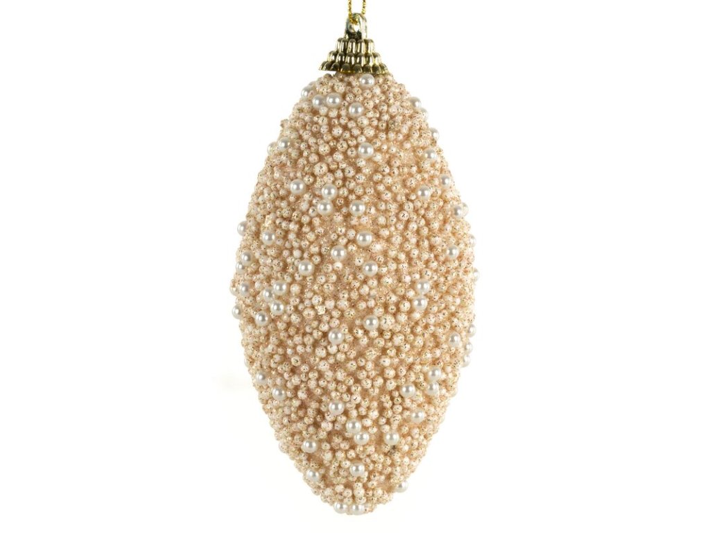 Ozdoba na vianočný stromček je vyrobená z plastu a pokrytá malými guľôčkami v kombinácií s malinkými perličkami.