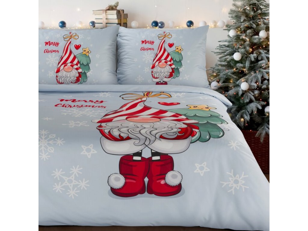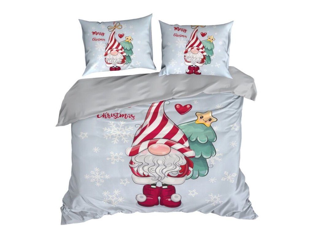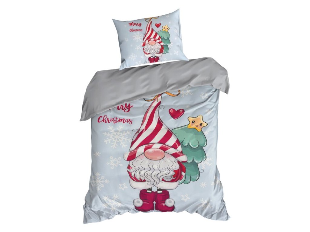 Vianočné posteľné obliečky BEINER v sivej farbe s motívom vianočného škriatka.