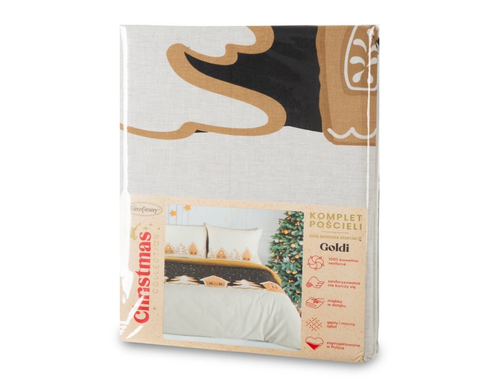 Vianočná súprava posteľnej bielizne GOLDI je dokonalým spôsobom, ako vniesť do spálne sviatočnú atmosféru.
