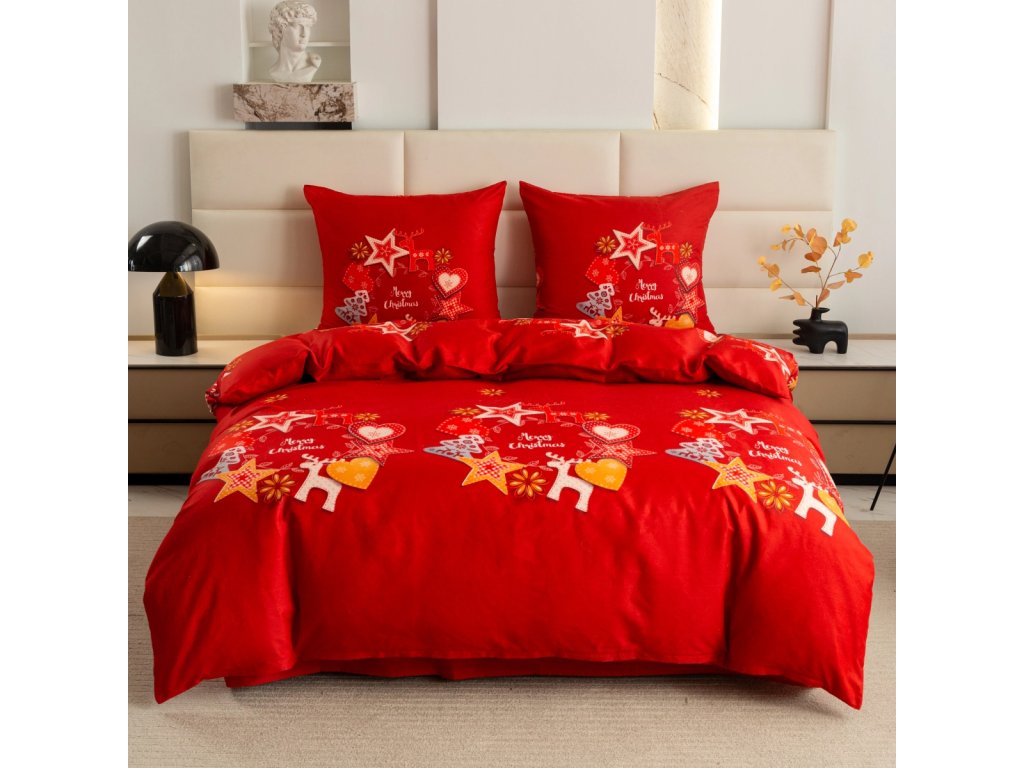 Charakteristická farebná scéna založená na červenej farbe s akcentmi krásne zdôrazňuje zimný charakter a prináša do spálne teplo a útulnosť.