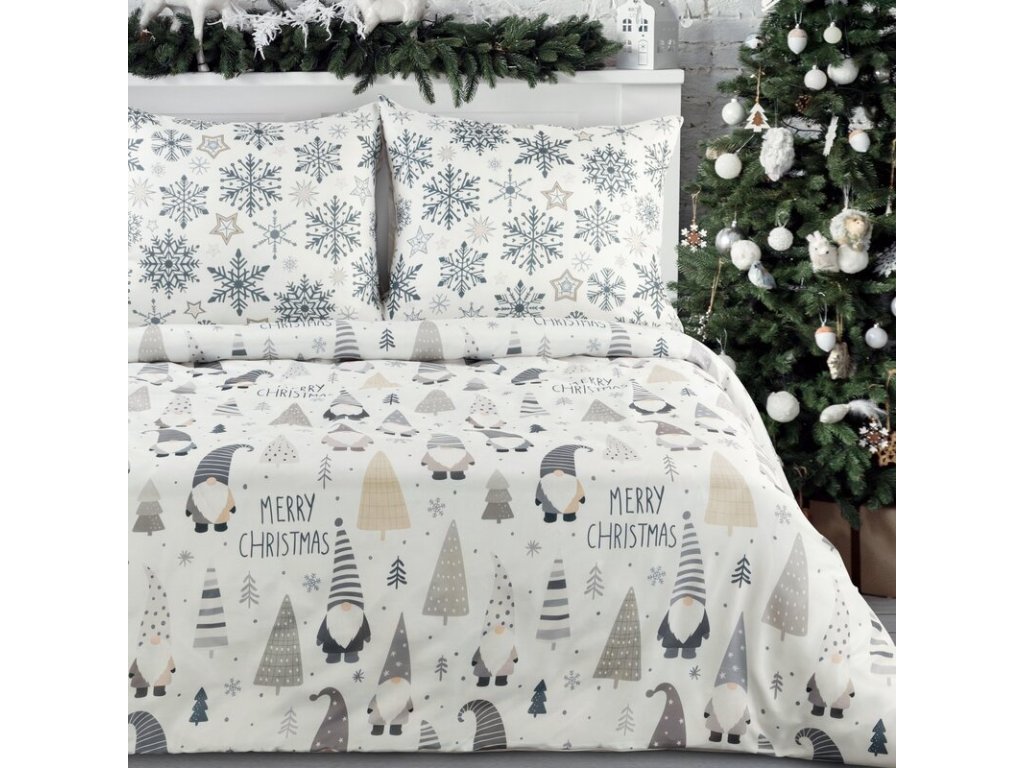 Potlač vianočných škriatkov robí posteľnú bielizeň štýlovou a nadčasovou, dokonale dopĺňajúcou zimný interiér.