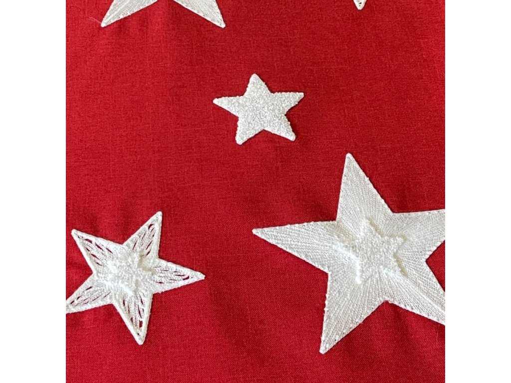 Je vyrobený z príjemnej látky pripomínajúcej ľan a zdobený výšivkou odkazujúcou na blížiaci sa vianočný čas.