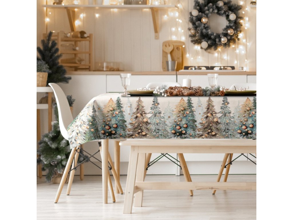 Kombinujte obrus LES s vianočným behúňom alebo obliečkami na vankúše s podobným motívom a vytvorte si harmonický vianočný interiér plný tepla a radosti.
