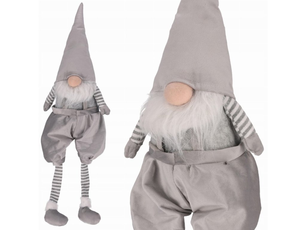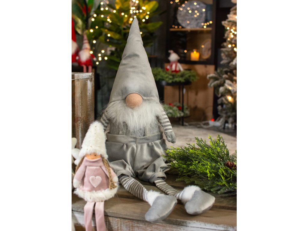 Dekoračný vianočný škriatok v krásnej sivo - striebornej farbe vytvorený z mäkučkej zamatovej látky.
