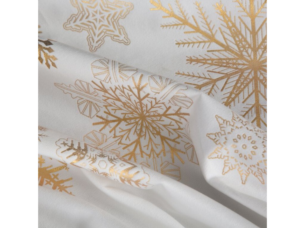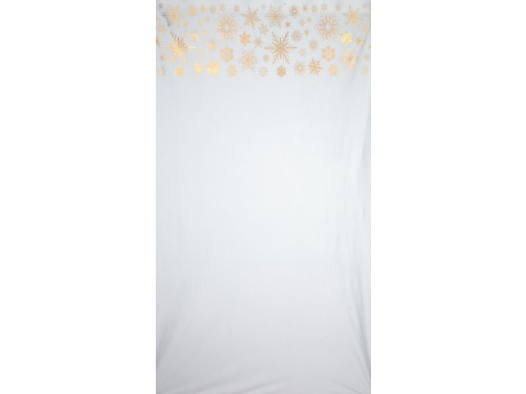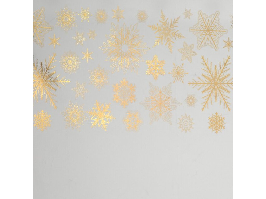 Lesklá potlač snehových vločiek v hornej časti závesu mu dodáva nádych zimnej mágie.