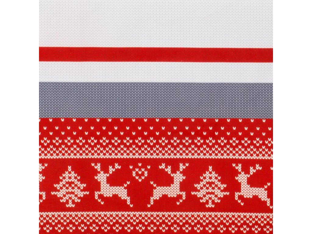 Je zdobený potlačou jelenčekov a štrikovaným, pleteným vzorom.