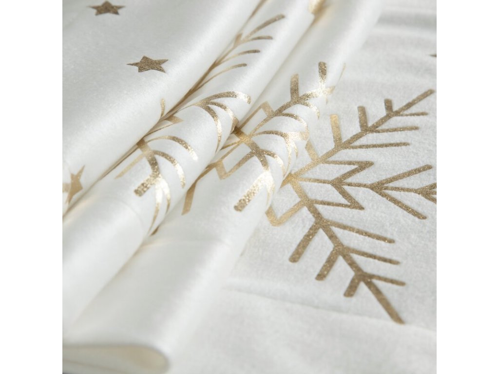 Výrobok je vyrobený z kvalitného zamatového materiálu potlačený lesklým zlatým vzorom snehových vločiek.