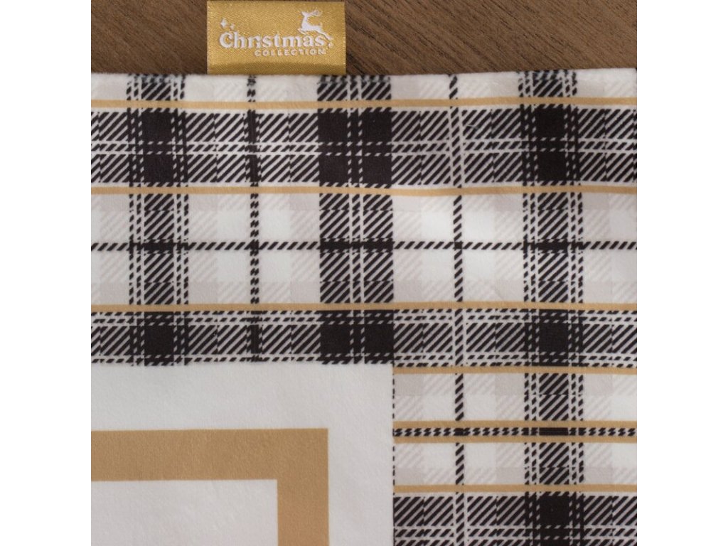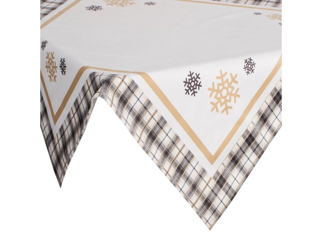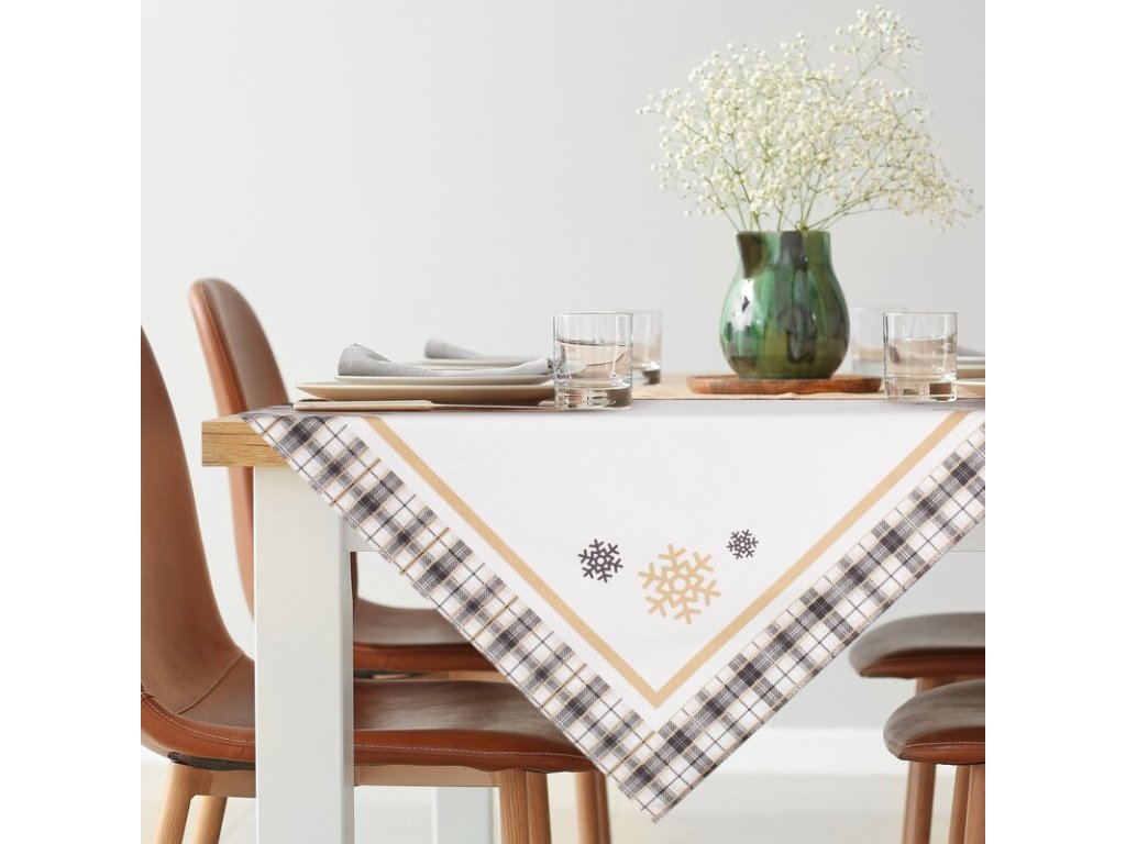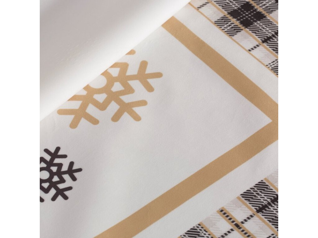 Zamatový dekoračný obrus na stôl s vianočným motívom v krémovobielej farbe.