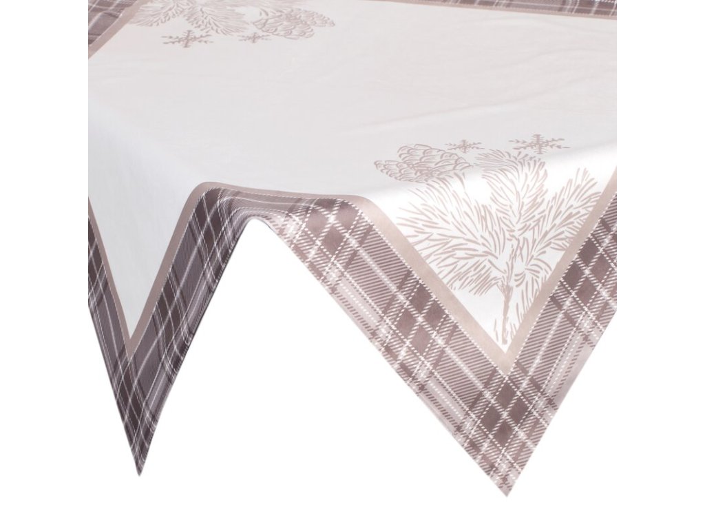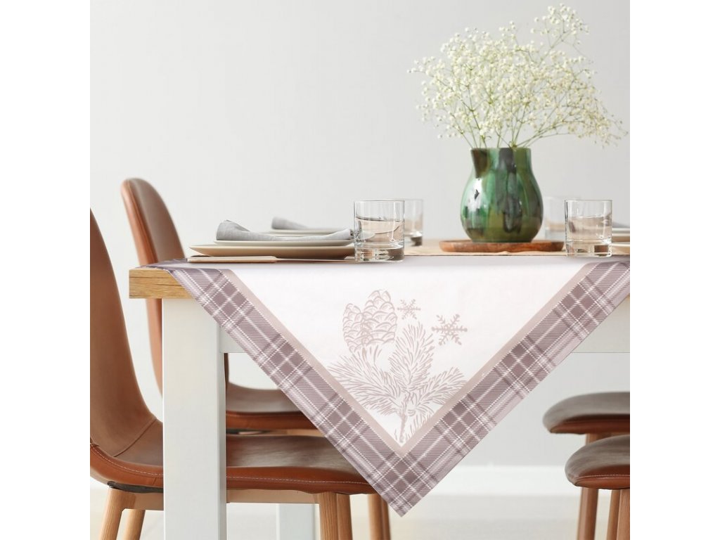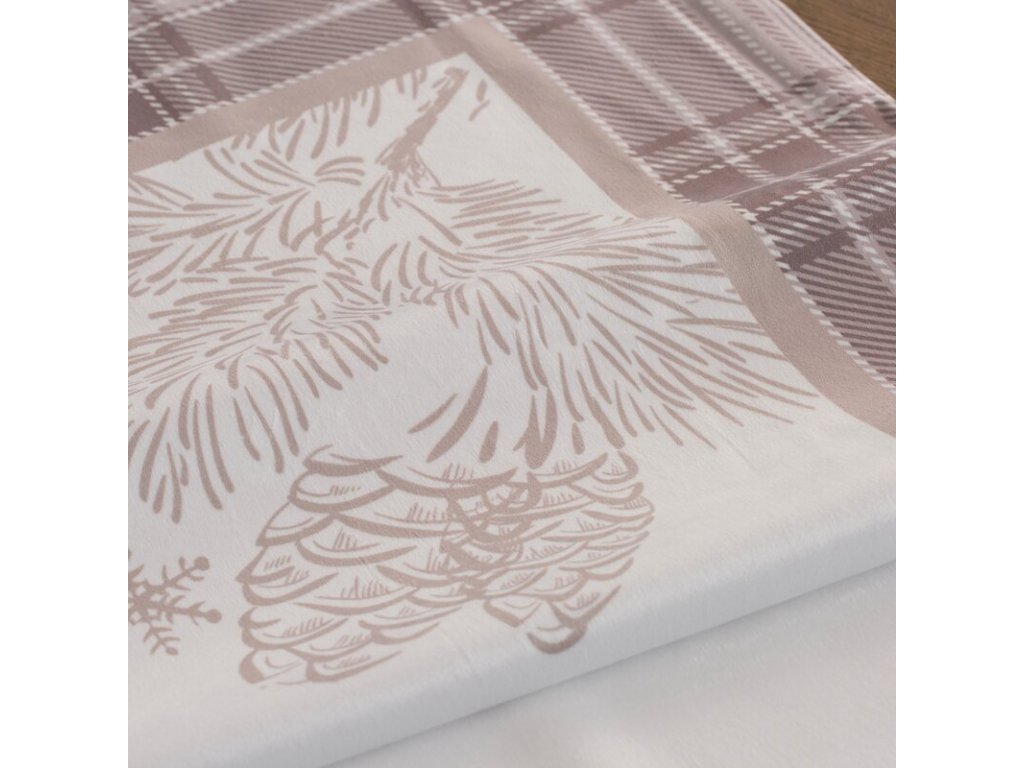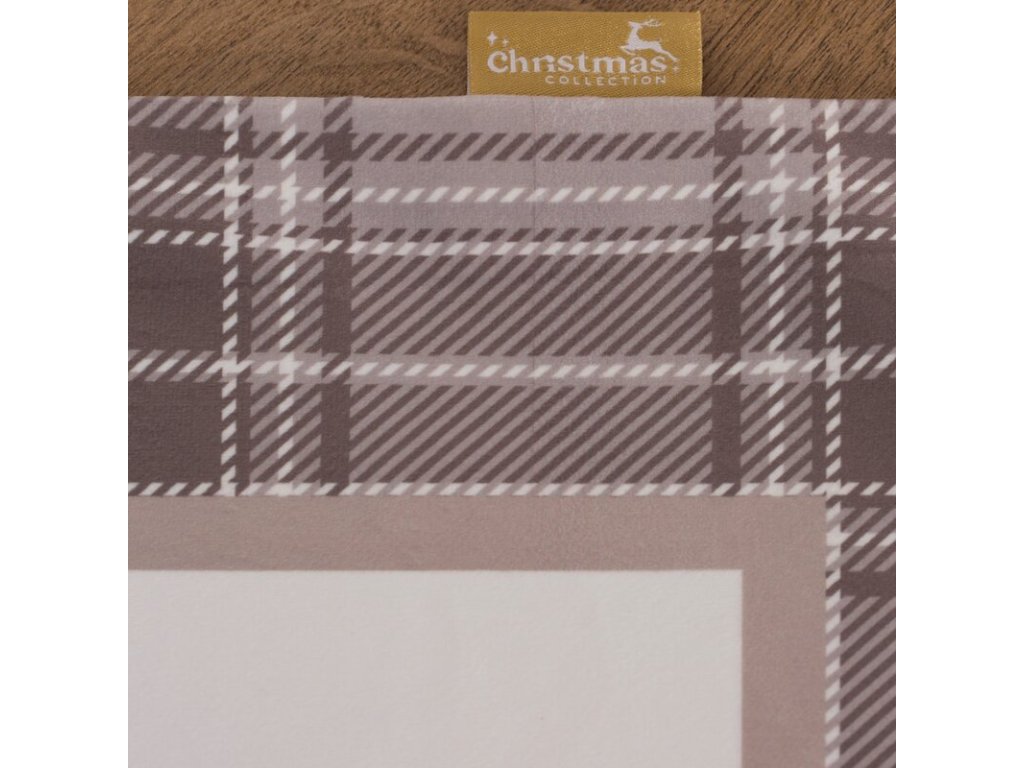 Zamatový dekoračný obrus na stôl s vianočným motívom v béžovej farbe.