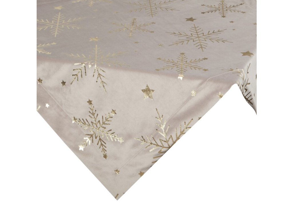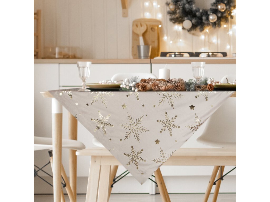 Vianočný zamatový obrus na stôl v béžovej farbe so zlatými vločkami 85 x 85 cm