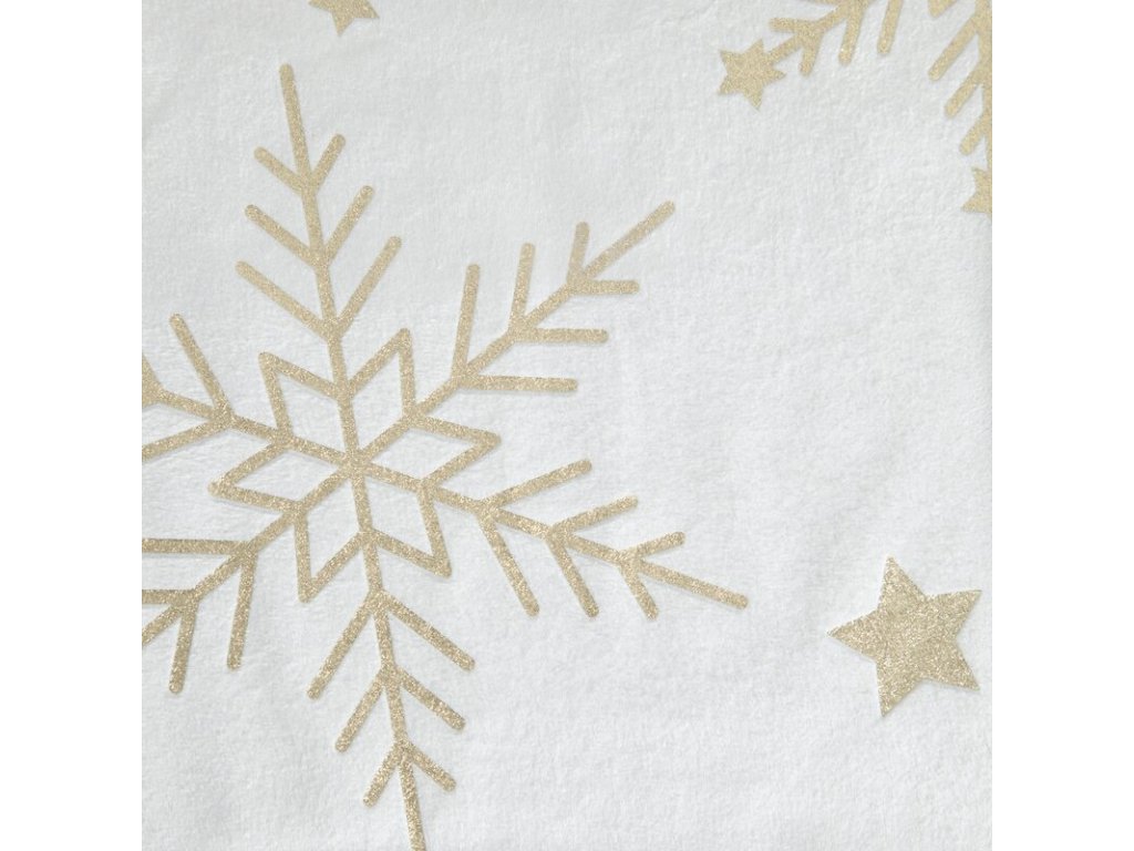 Výrobok je vyrobený z kvalitného zamatového materiálu potlačený lesklým zlatým vzorom snehových vločiek.