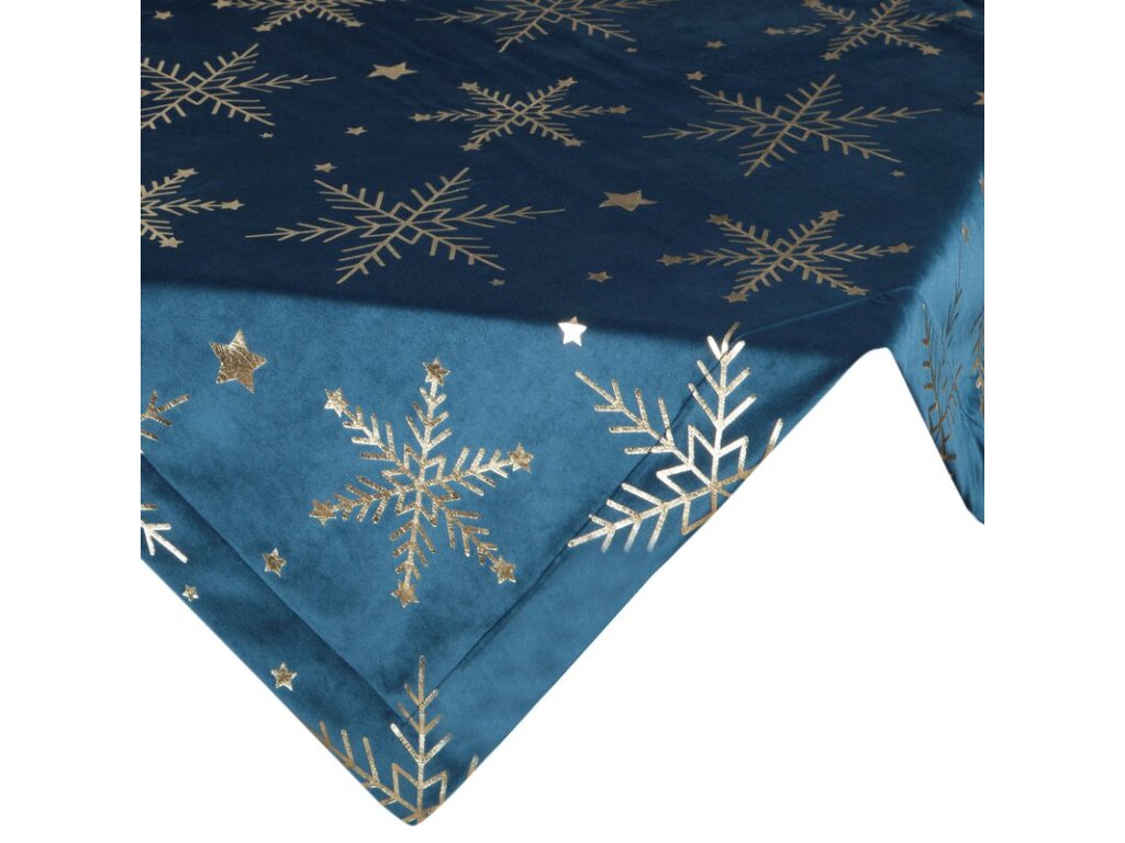 Slávnostný, zamatový, ozdobný obrus s lesklou potlačou snehových vločiek bude perfektným doplnkom vášho štedrovečerného stola.