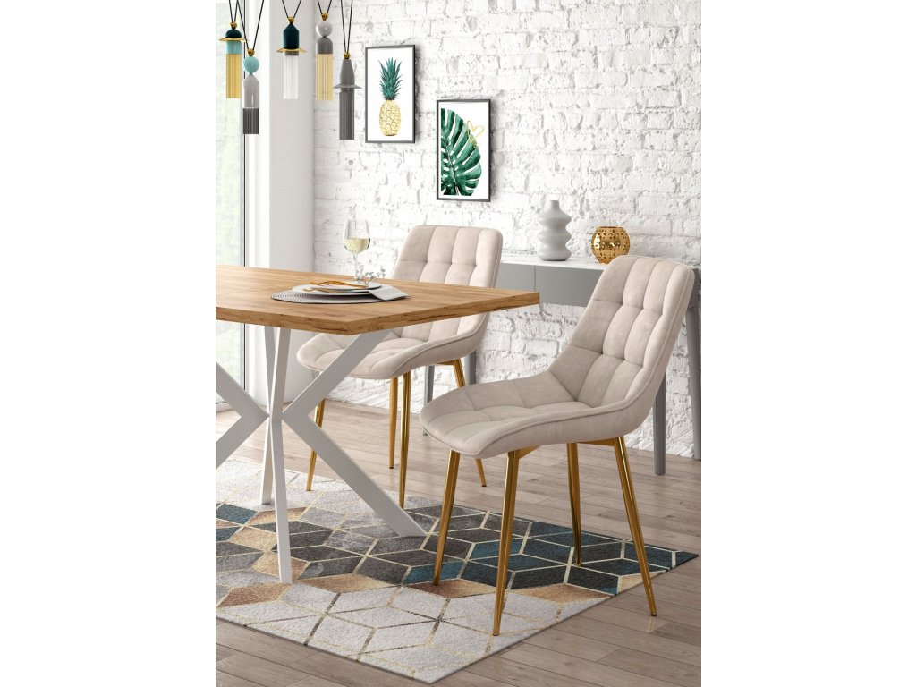 Zamatová jedálenská stolička BEATRIX LUX - béžová so zlatými nohami
