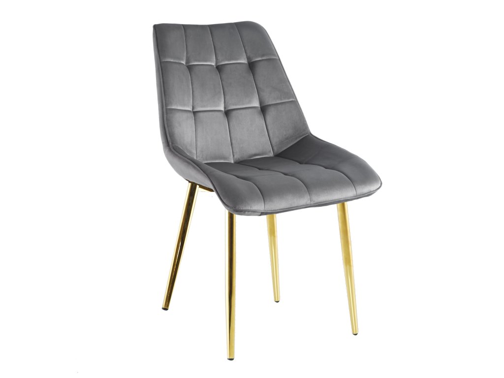 Zamatová jedálenská stolička BEATRIX LUX - sivá so zlatými nohami