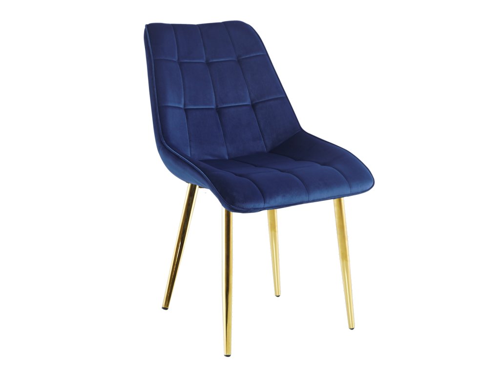 Zamatová jedálenská stolička BEATRIX LUX - tmavomodrá so zlatými nohami