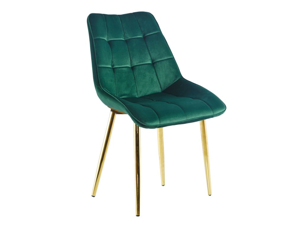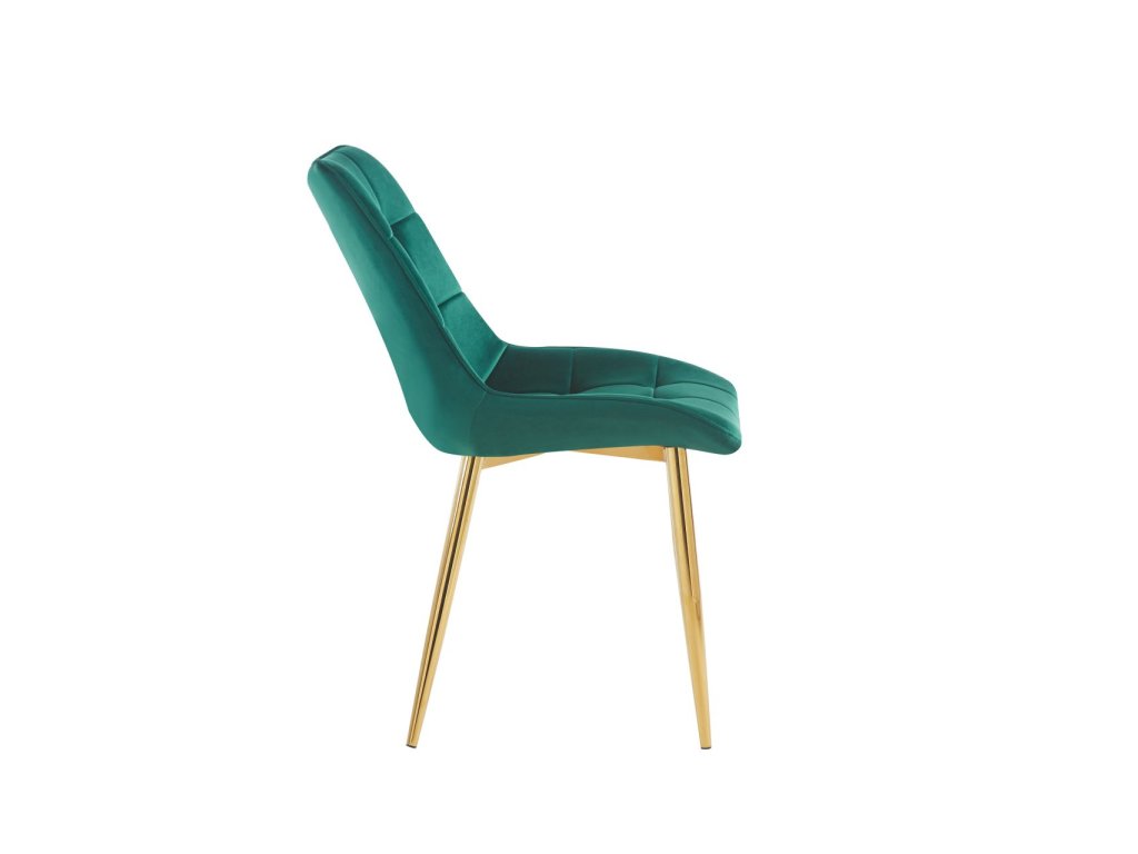 Zlaté kovové nohy prinášajú stabilitu, odolnosť a zároveň dodávajú stoličke estetický luxusný akcent. Prešívanie sedadla a operadla zvýrazňuje kvalitné spracovanie a dodáva stoličke dekoratívny charakter.