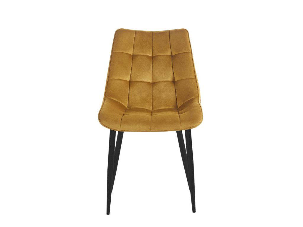 Zamatová jedálenská stolička BEATRIX - medovozlatá s čiernymi nohami