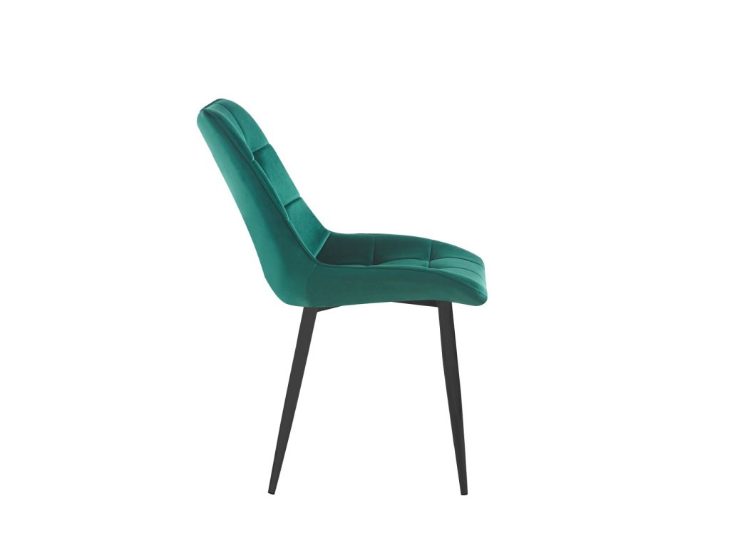 Tmavozelený velúr dodáva stoličke noblesu a hĺbku, pričom farba pôsobí výnimočne, trendovo a zároveň harmonicky v rôznych typoch interiérov – od moderného, cez glamour, až po škandinávsky či loftový štýl. Zamatová látka je mimoriadne príjemná na dotyk a vytvára elegantný, mierne lesklý efekt.