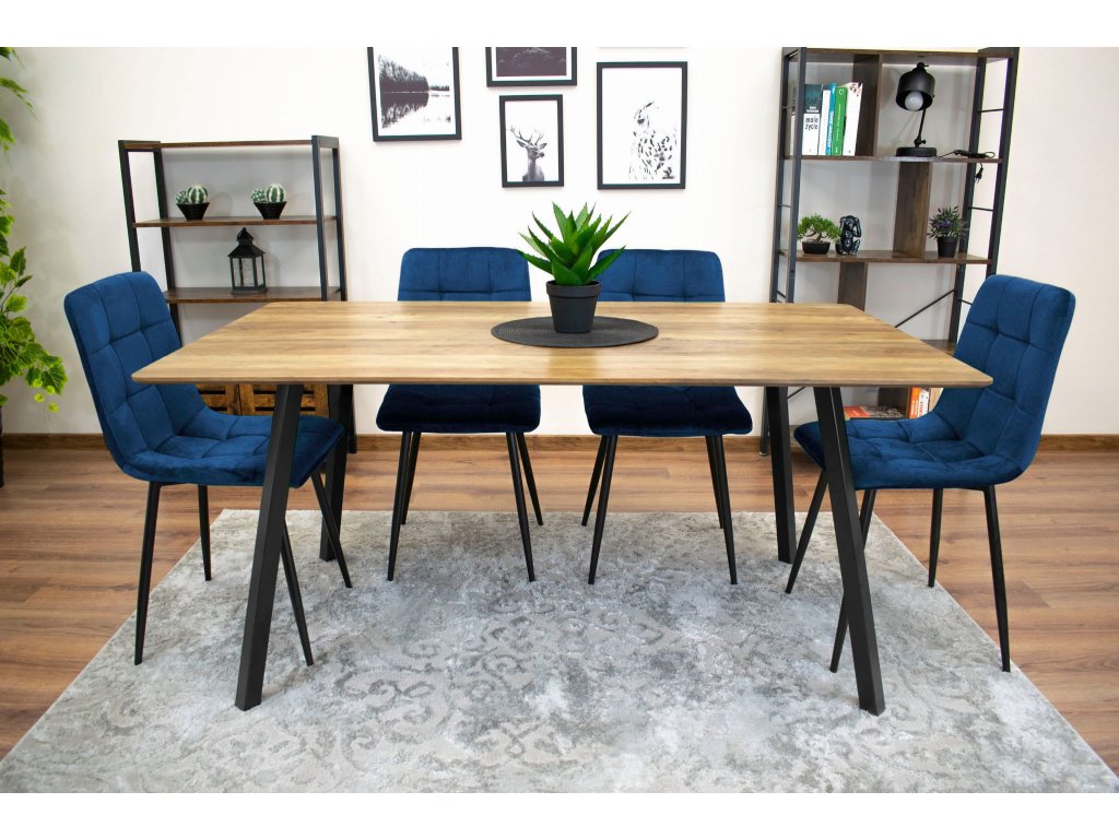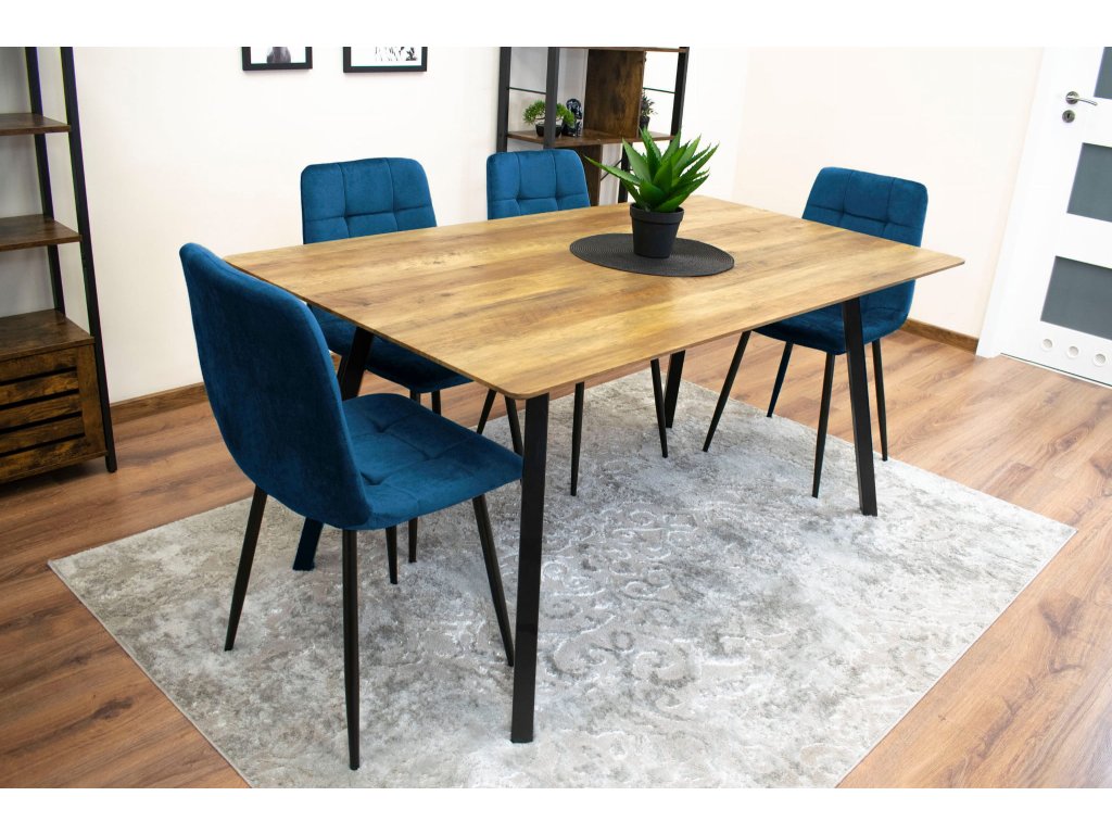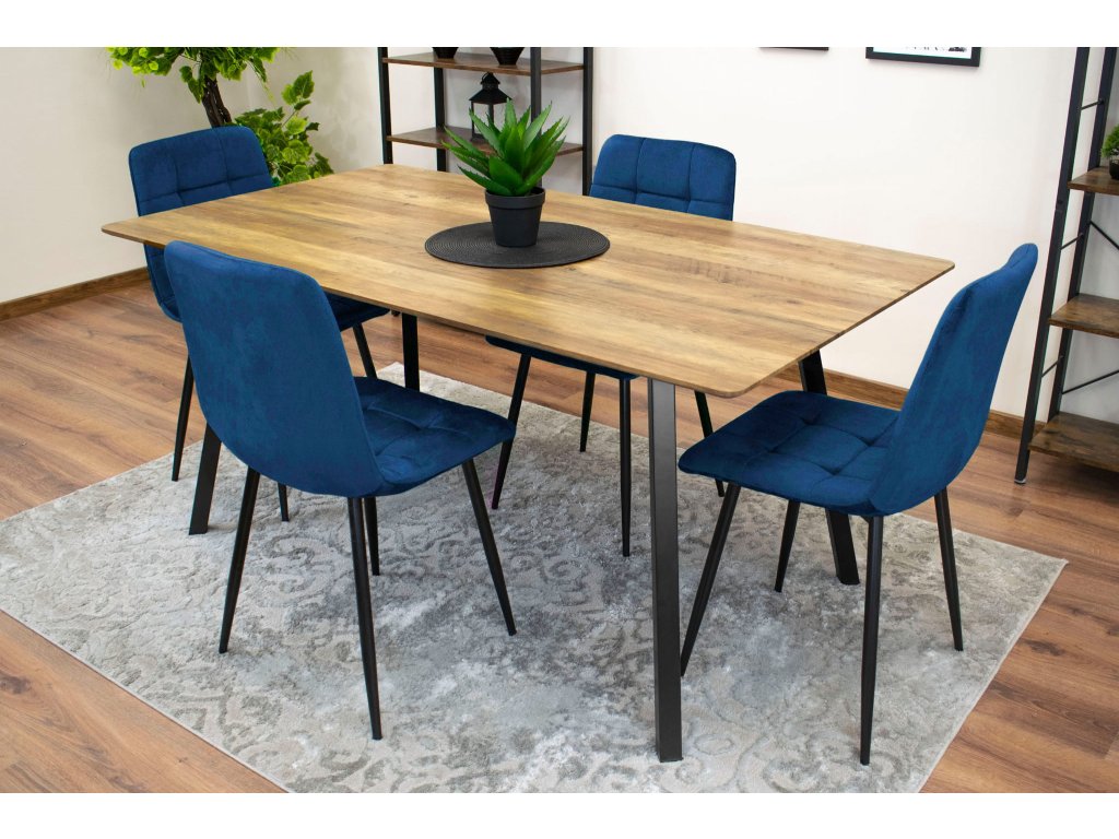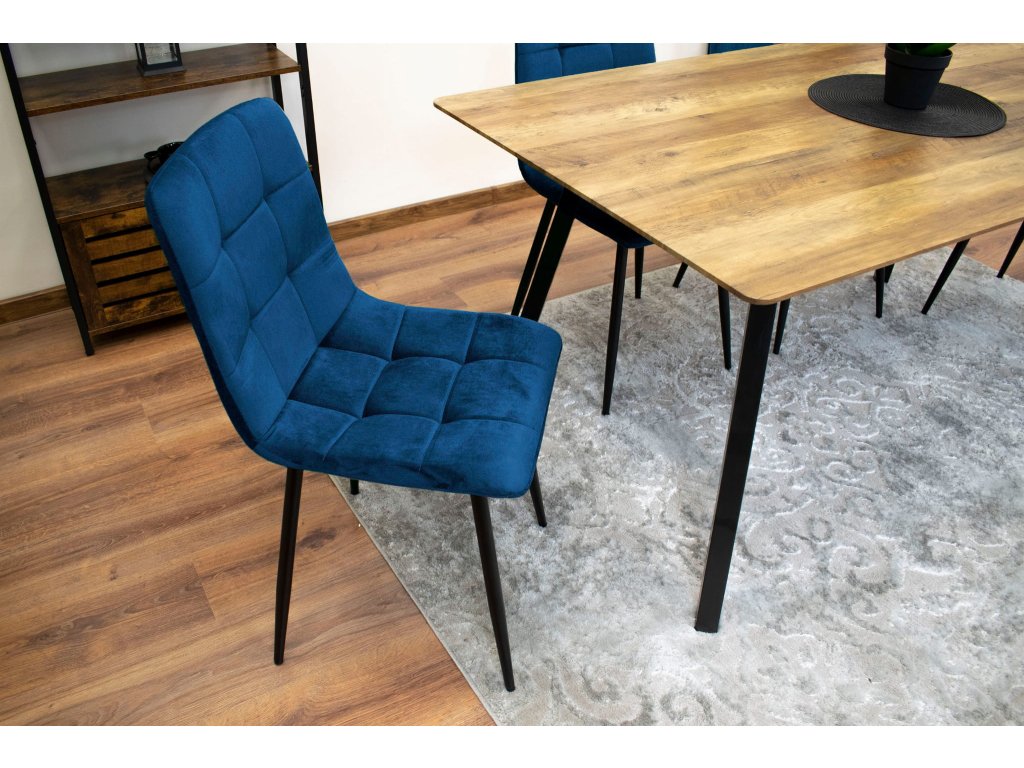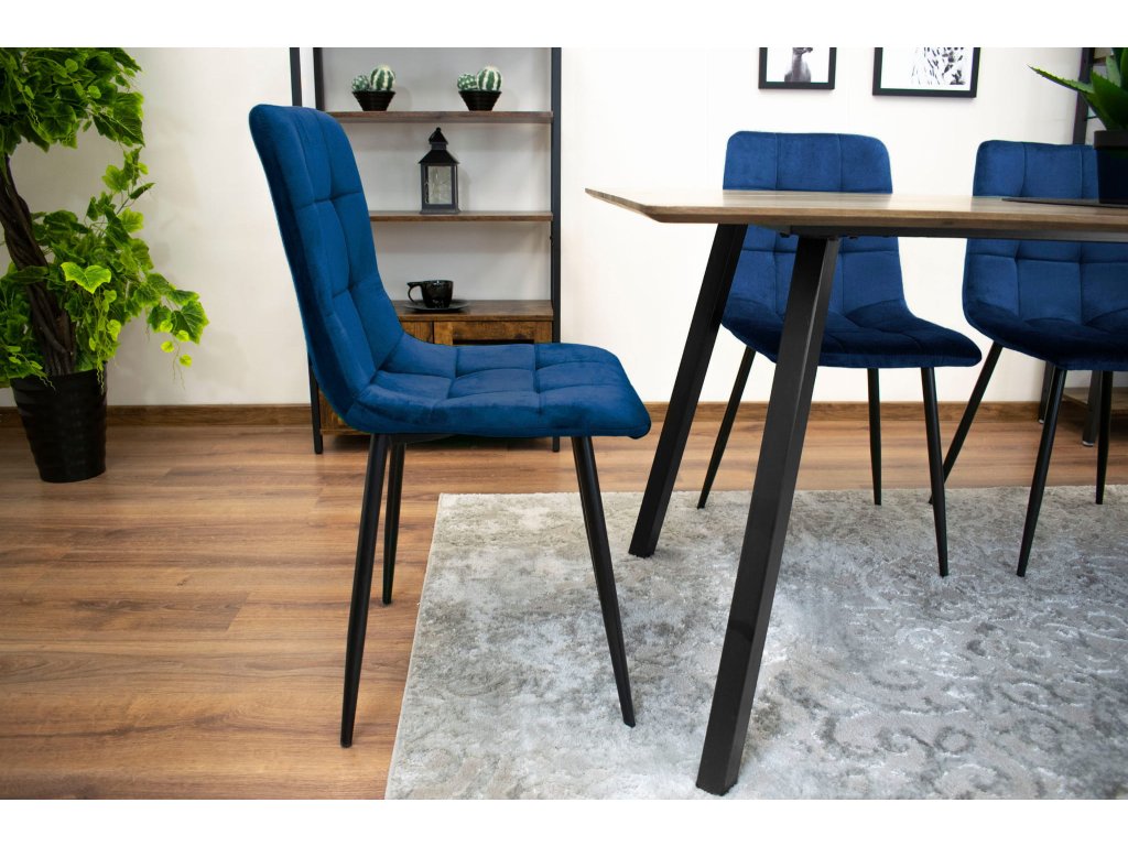 Zamatová jedálenská stolička KARA - tmavomodrá