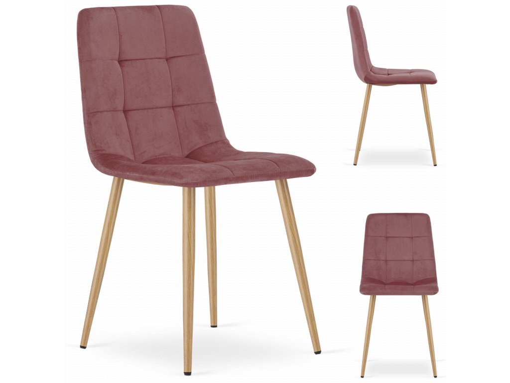 Zamatová jedálenská stolička KARA tmavoružová - kovové nohy buk