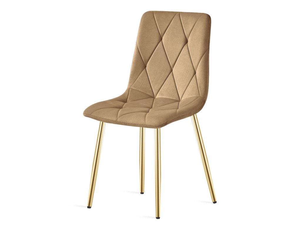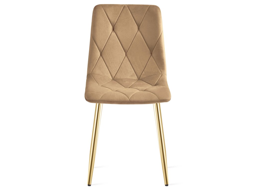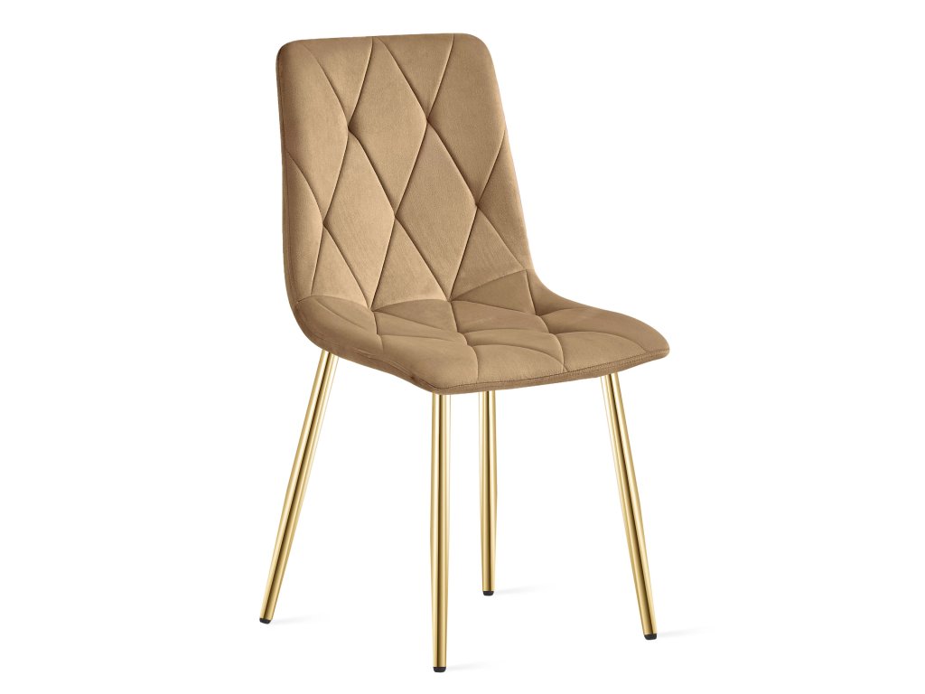 Zamatová jedálenská stolička LIBRA - hnedá so zlatými nohami