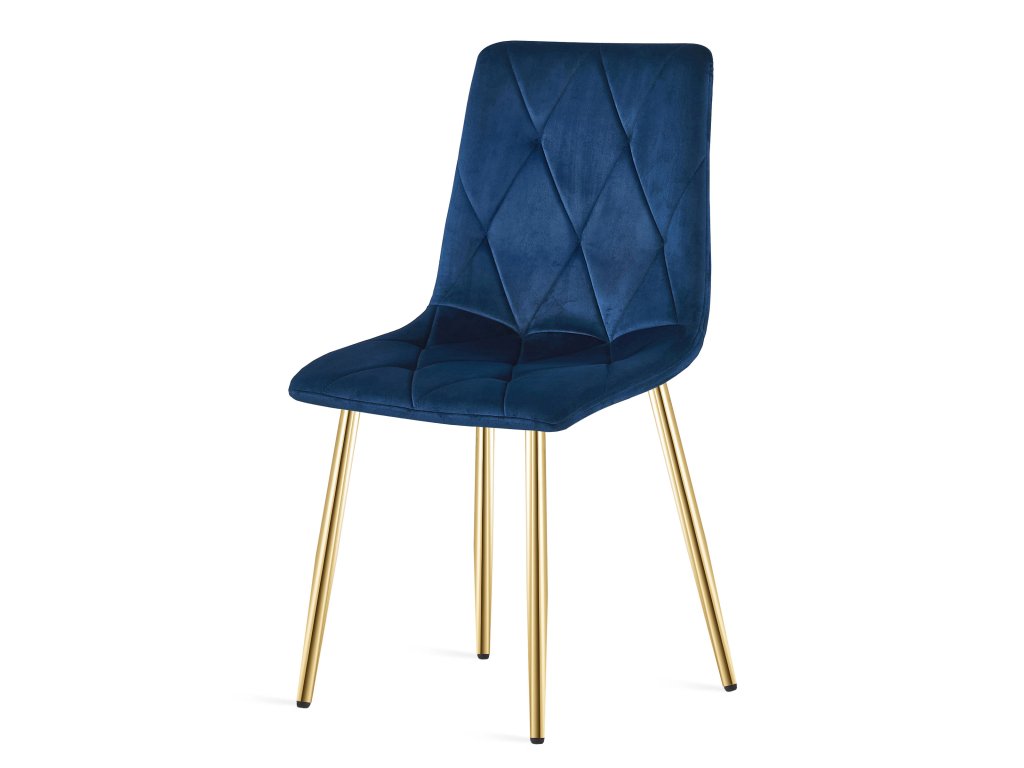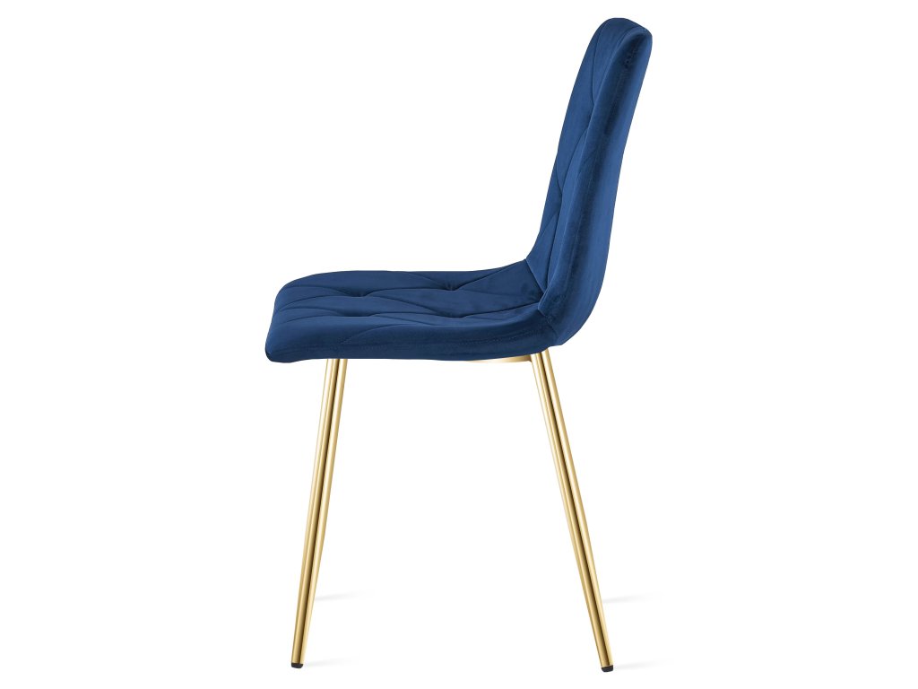 Zamatová jedálenská stolička LIBRA - tmavomodrá so zlatými nohami