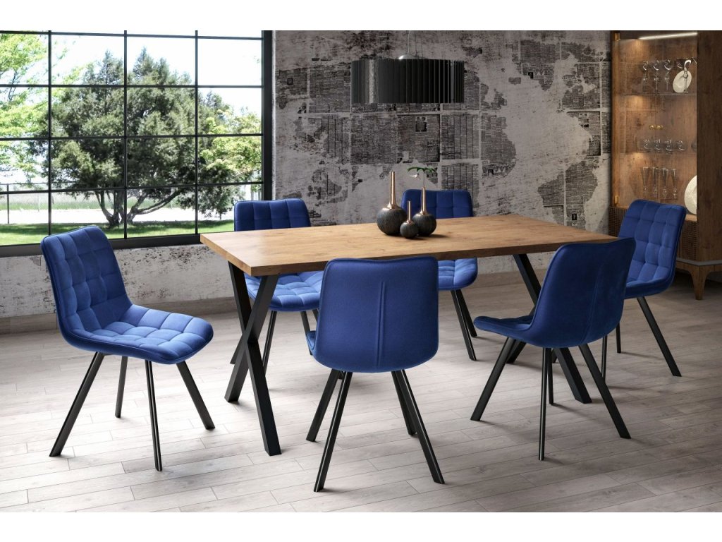 Vysokokvalitné zamatové čalúnenie vo farbe tmavomodrej (možno upraviť podľa farby variantu) pôsobí elegantne, príjemne na dotyk a vytvára hrejivú atmosféru pri stolovaní aj relaxe. Materiál velvet krásne odráža svetlo, čím stoličke dodáva jemný 3D efekt a exkluzívny vzhľad.