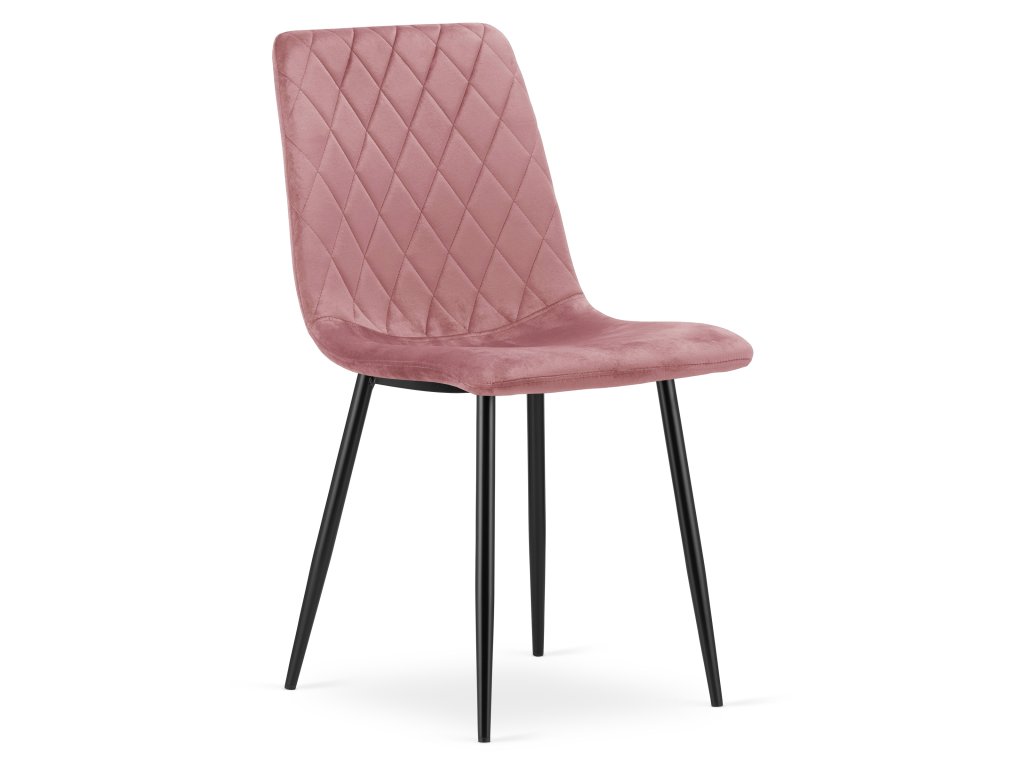 Zamatová jedálenská stolička TURIN - ružová s čiernymi nohami