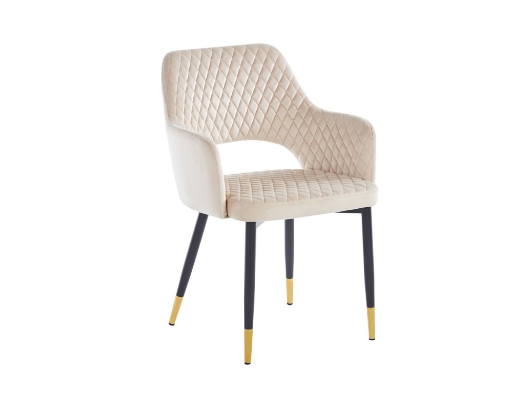 Zamatová jedálenská stolička z ROYAL (béžová) s čierno-zlatými nožičkami