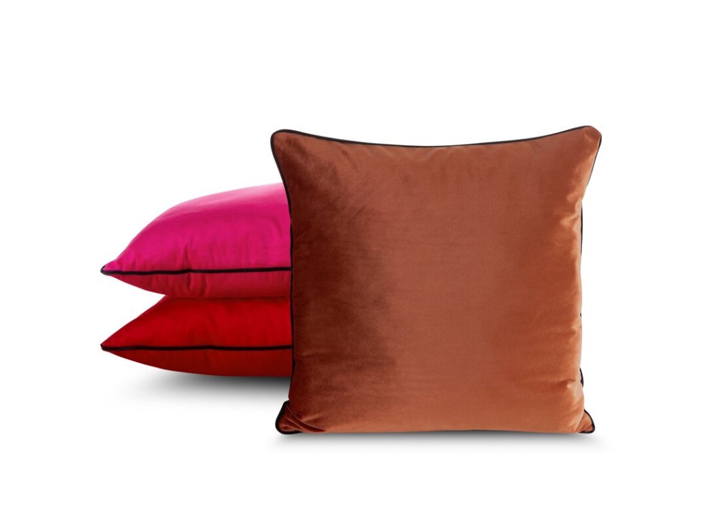 Kolekcia dekoratívnych obliečok na vankúše GAJA, zdobená vkusným ozdobným lemovaním, poteší sýtymi farbami a jemnosťou lesklého zamatu.