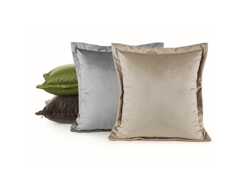 Kolekcia dekoratívnych obliečok na vankúše RIA, zdobená vkusným ozdobným lemovaním, poteší sýtymi farbami a jemnosťou lesklého zamatu.