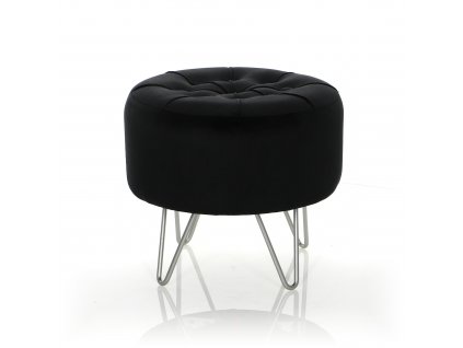 Zamatová taburetka ALIA L - čierna strieborné nohy