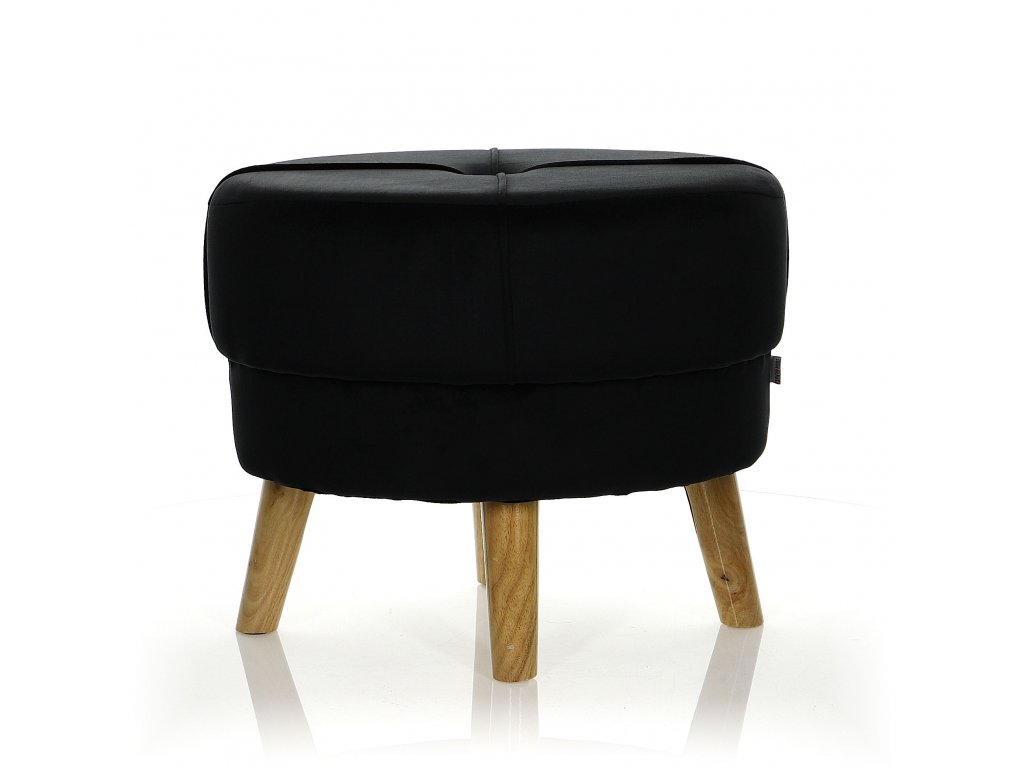 Prezentovaný predmet je vyrobený zo zamatu vo farbe čiernej. Nohy taburetky sú vyrobené z masívneho borovicového dreva, pokryté lakom.