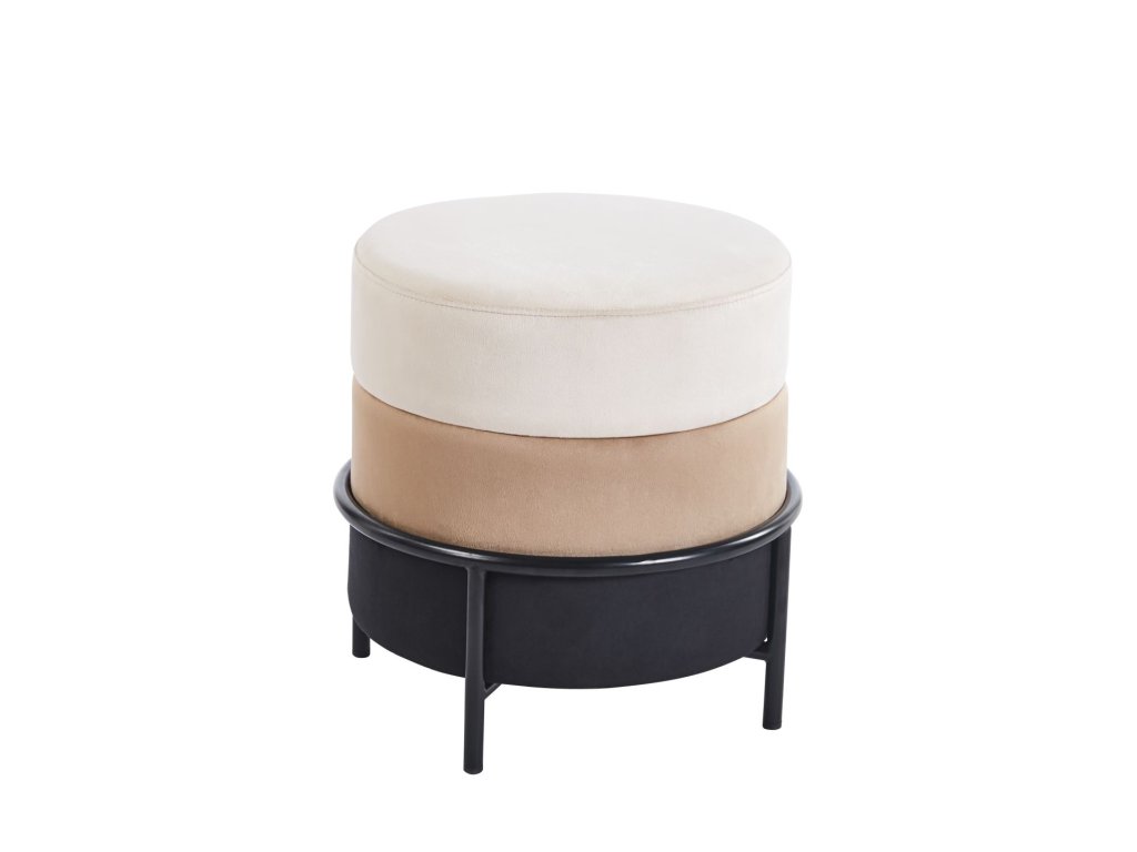 Zamatová taburetka RONDO s čiernou konštrukciou (béžová/cappuccino/čierna)
