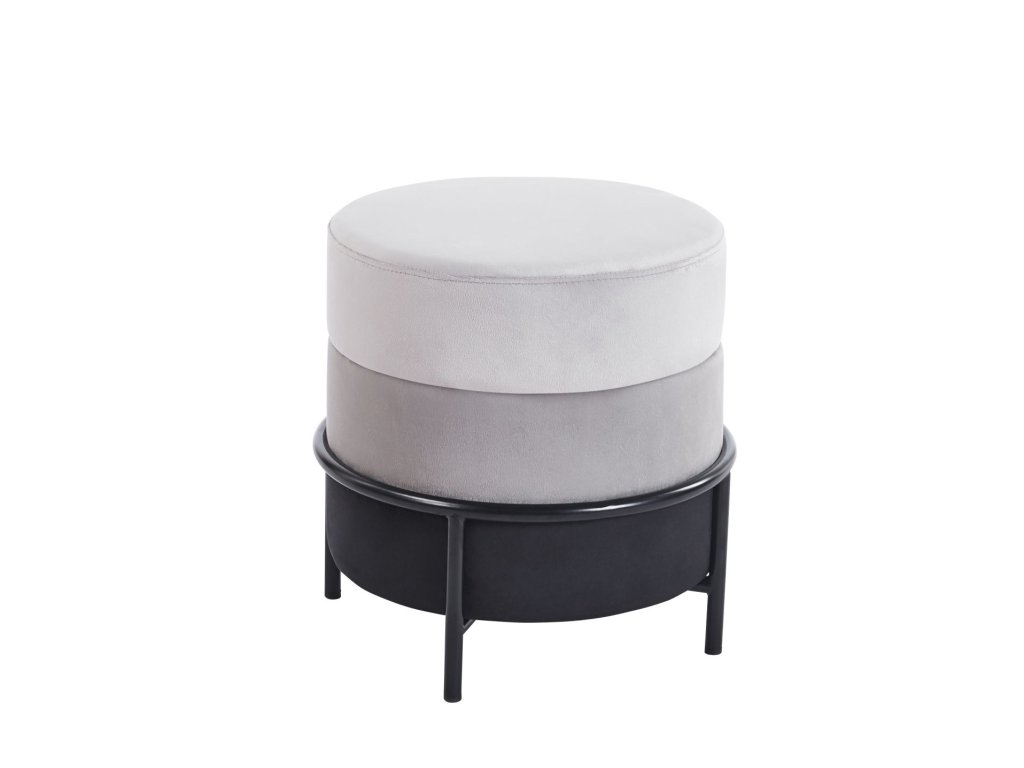 Taburetka RONDO je štýlový a praktický doplnok do moderného interiéru, ktorý zaujme nadčasovou kombináciou farieb a elegantným spracovaním. Okrúhly tvar dopĺňa zamatové čalúnenie v harmonickej farebnej skladbe svetlosivá / sivá / čierna, vďaka čomu pôsobí moderne, čisto a ľahko sa kombinuje s väčšinou zariadenia. Celok dotvára pevná kovová konštrukcia v čiernej farbe, ktorá dodáva taburetke stabilitu aj výrazný dizajnový kontrast.