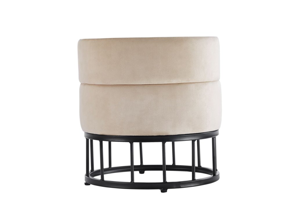 Taburetka AUREA je štýlový a zároveň funkčný doplnok, ktorý vnesie do interiéru eleganciu bez zbytočnej okázalosti. Kombinácia jemného béžového velúru a pevnej kovovej konštrukcie v čiernej farbe vytvára nadčasový kontrast, ktorý krásne zapadne do moderných, minimalistických aj glamour priestorov.