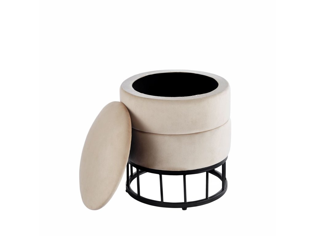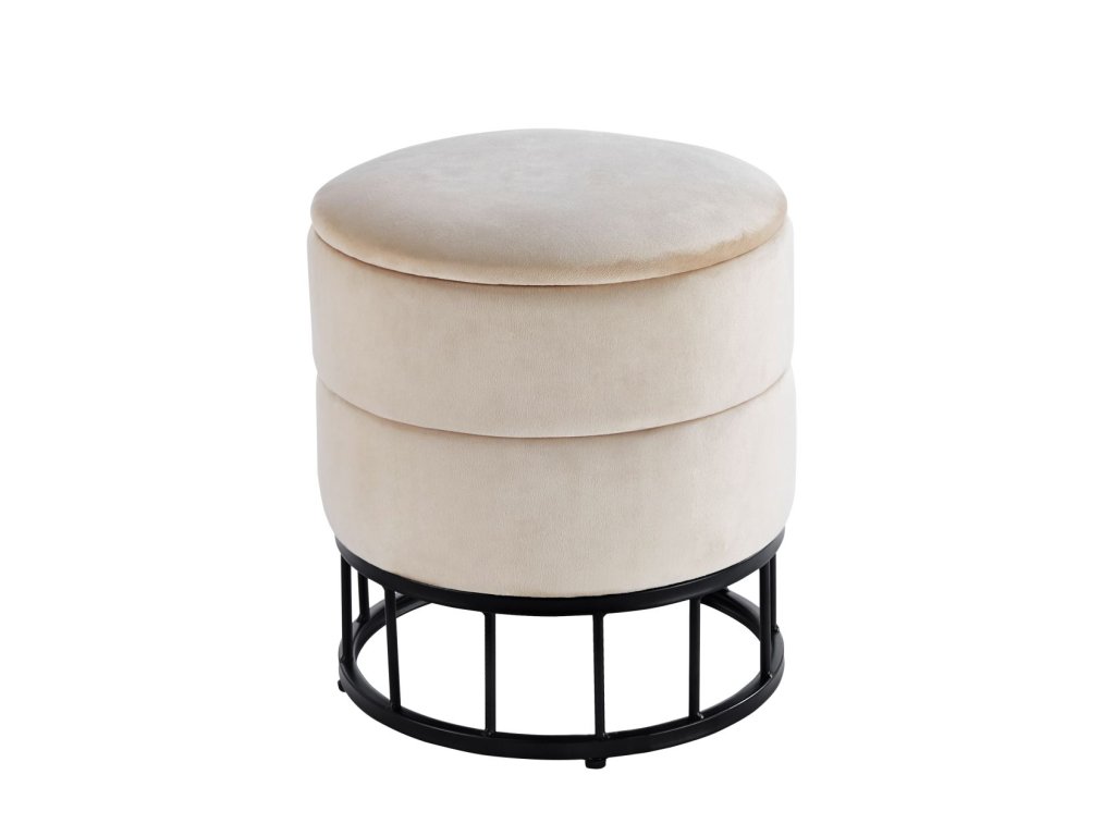 Zamatová taburetka s úložným priestorom AUREA - béžová