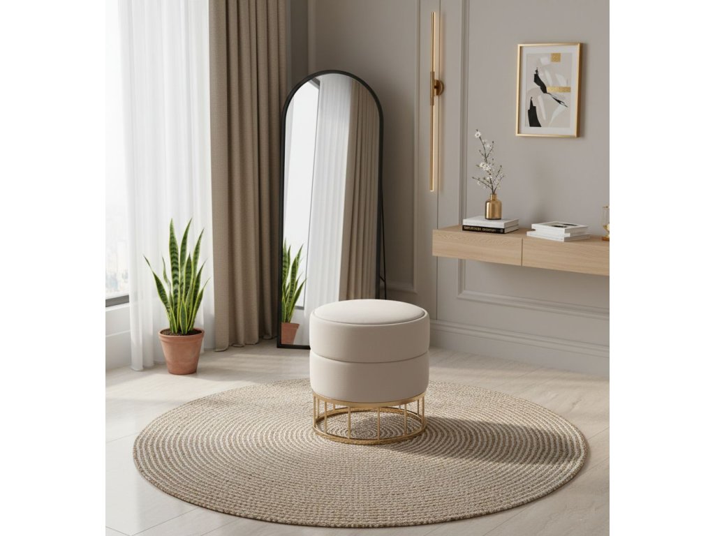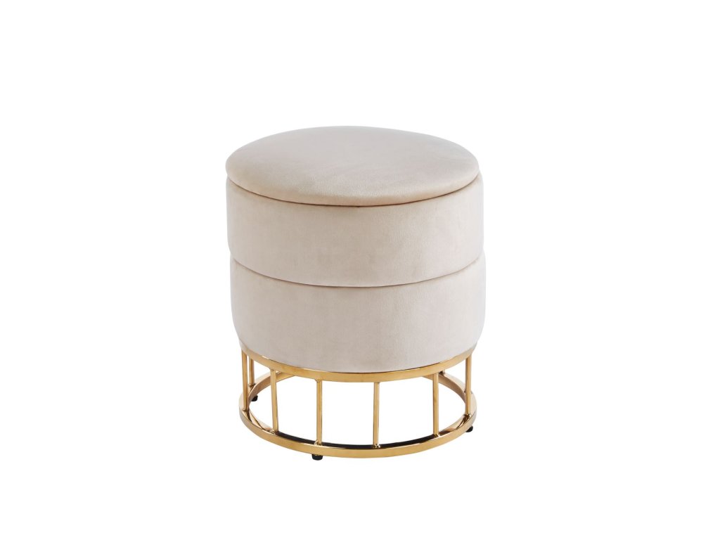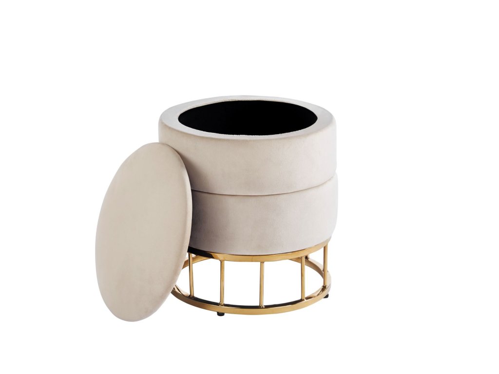Zamatová taburetka s úložným priestorom AUREA GOLD - béžová