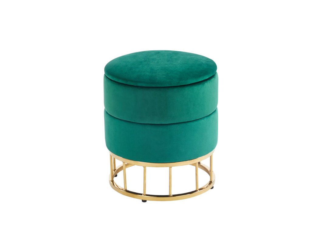 Zamatová taburetka s úložným priestorom AUREA GOLD - tmavozelená