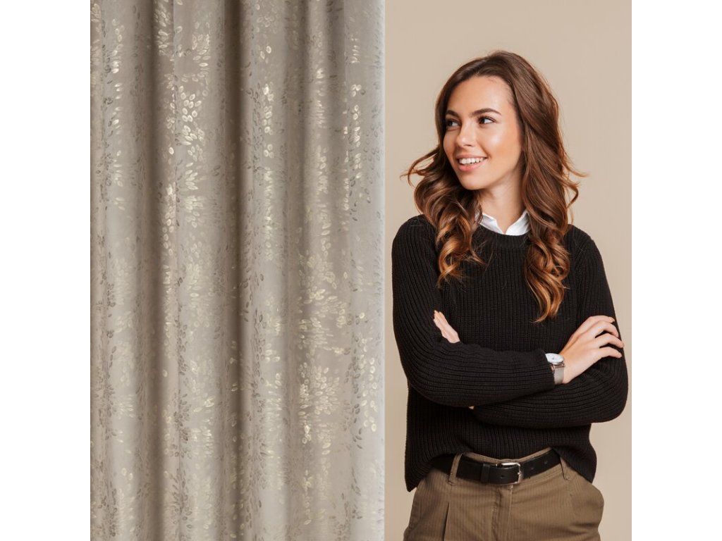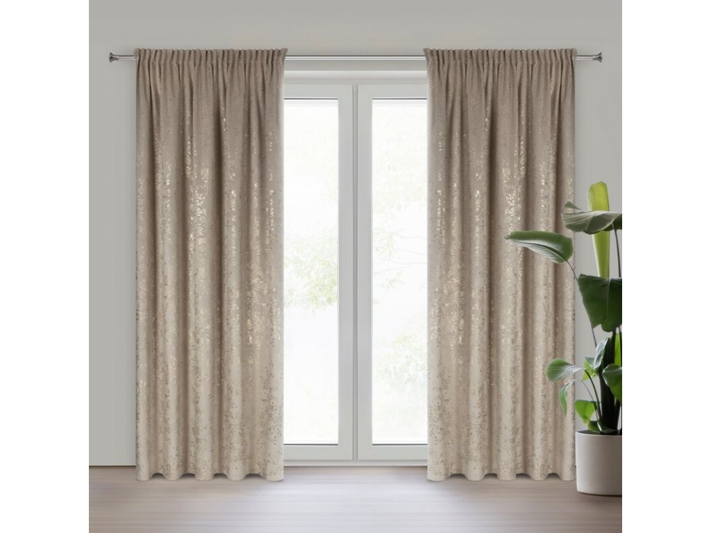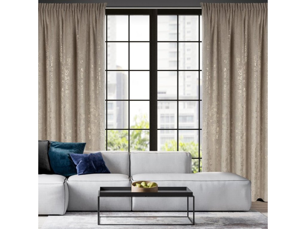 Zamatový záves FELIS s jemnou potlačou listov - béžový