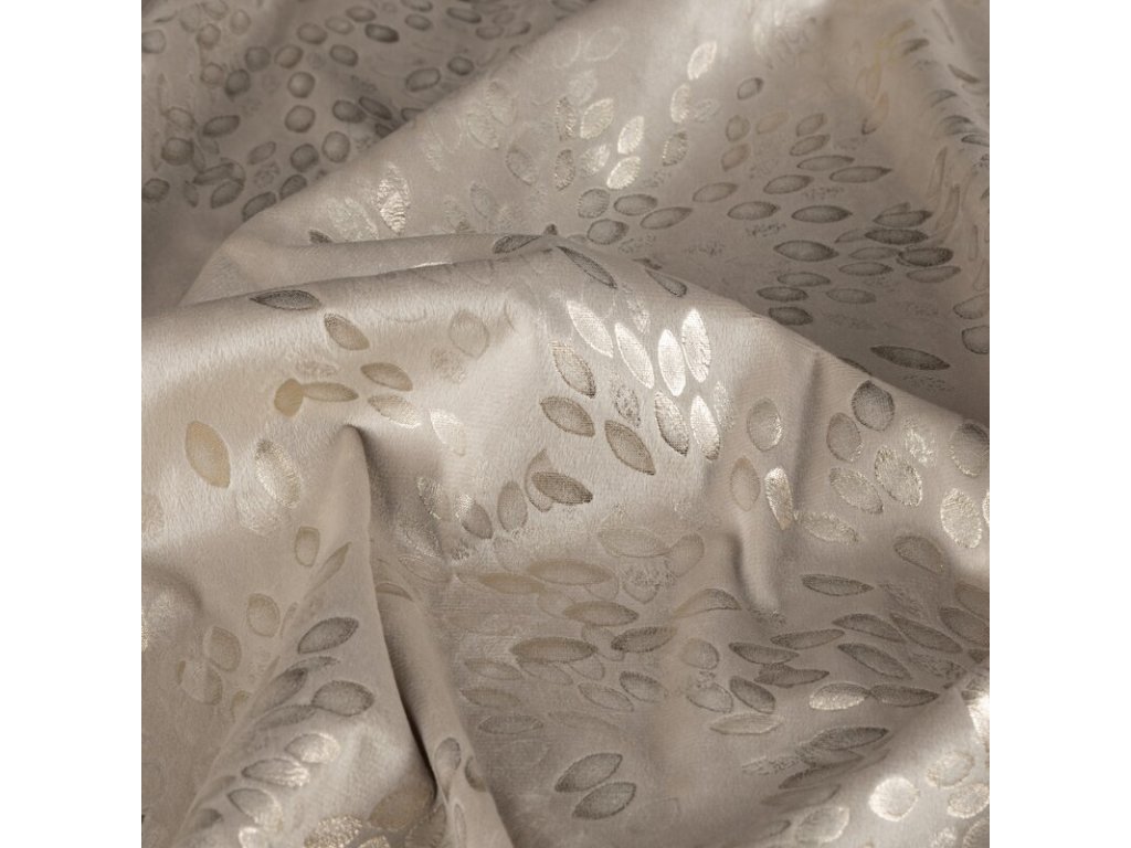 Lesklá potlač drobných lístkov na povrchu látky dodáva sofistikovanosť a prirodzenú ľahkosť a vnáša do interiéru jemný kvetinový motív.