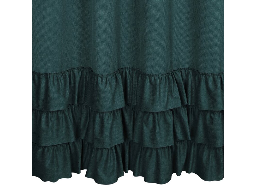Spodná časť závesu je zdobená krásnymi volánikmi, ktoré mu dodávajú ľahký a romantický charakter.