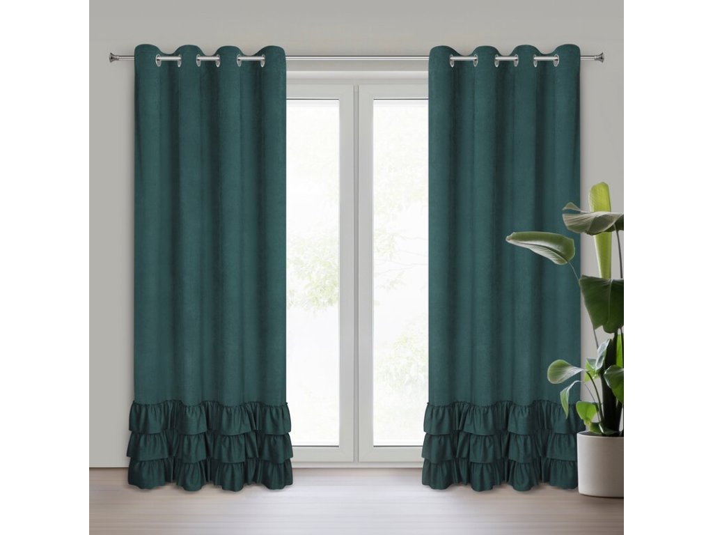 Zamatový záves MEGI s volánmi v tmavozelenej farbe na dekoračné kolieska