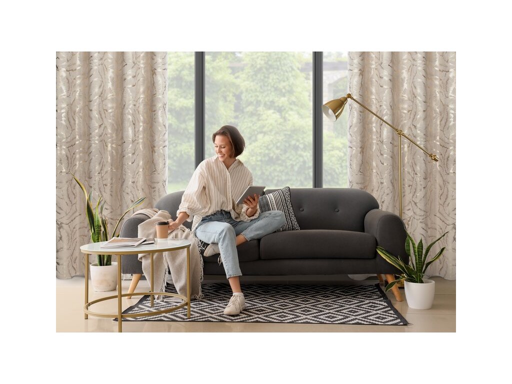 Hrubšia, nadýchaná a dobre zakrývajúca okno, látka s hustou väzbou a gramážou 200 g/m2 dobre zakrýva okno, zabezpečuje súkromie a príjemnú atmosféru v zariadenej miestnosti.