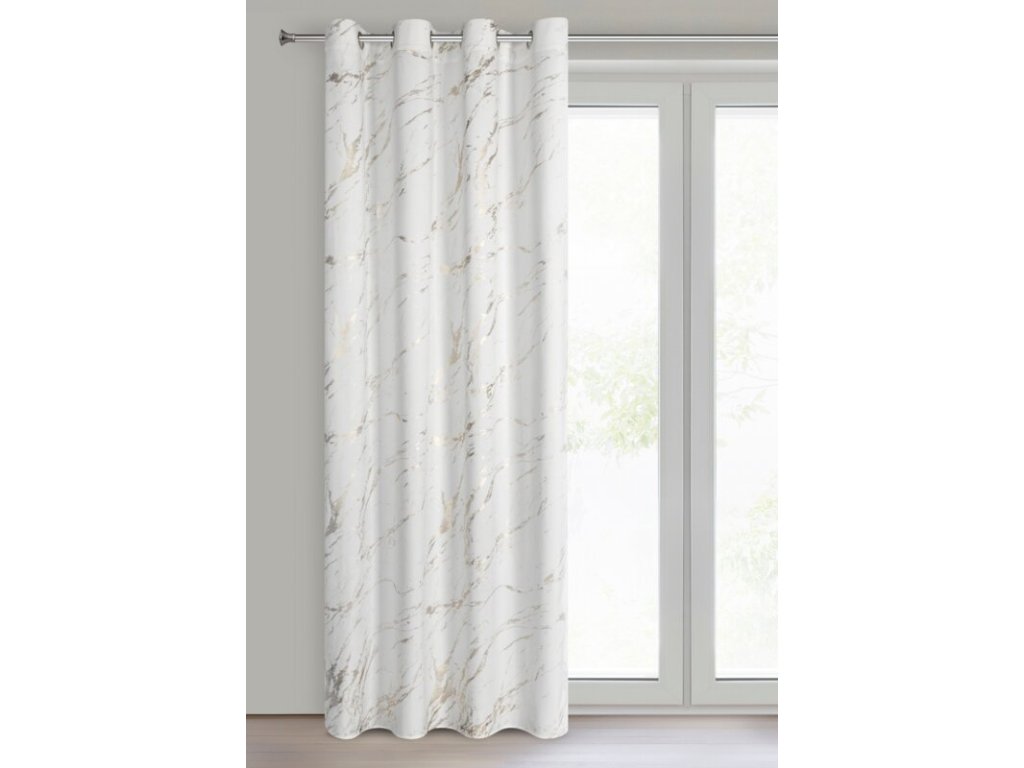 Záves MOLLY s reliéfnou zlatou potlačou na mäkkej zamatovej tkanine dodá interiéru elegantný a módne dekoratívny nádych.