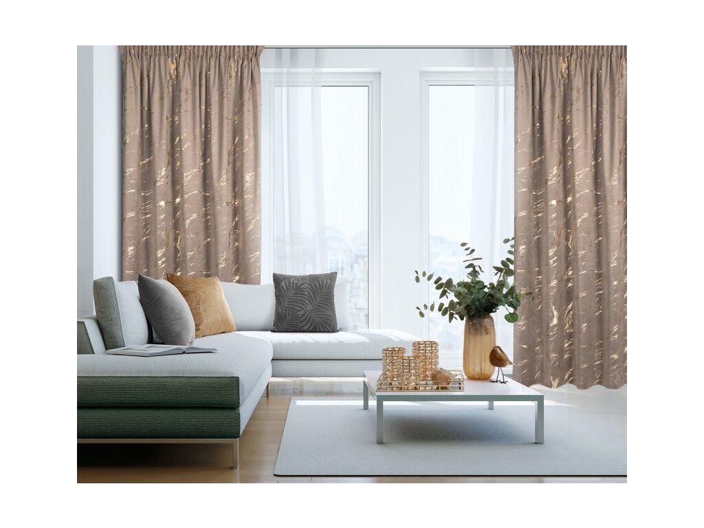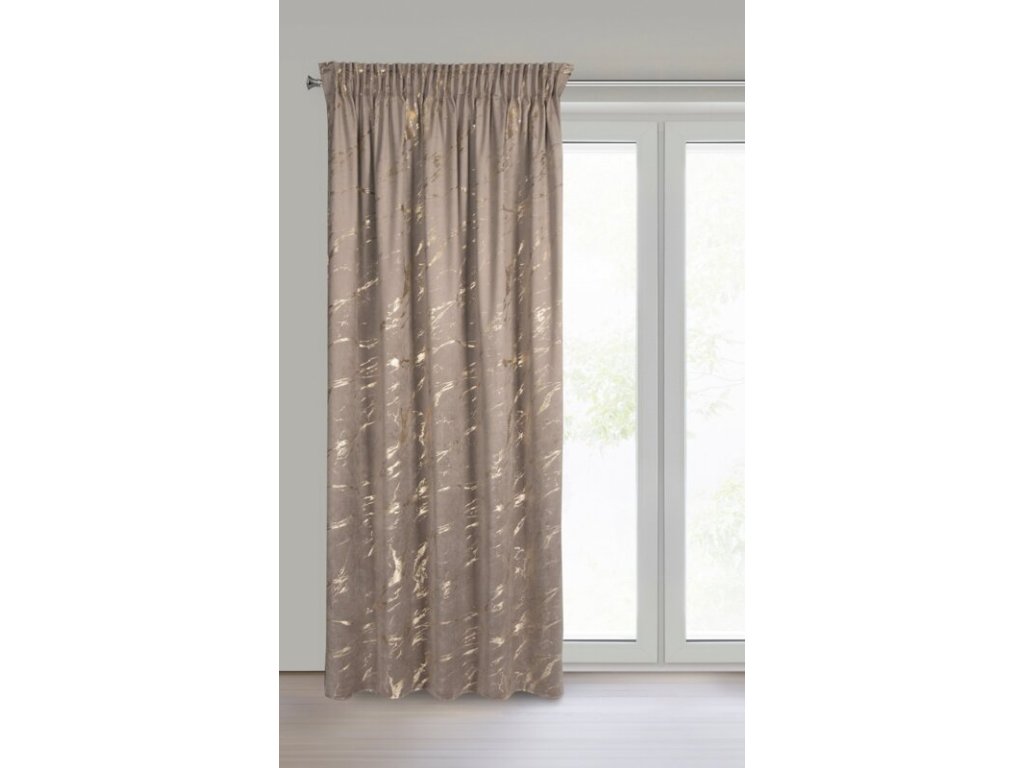 Zamatový záves MOLLY je vyrobený z kvalitného zamatového materiálu v hnedej farbe, pôsobí jemne a luxusne.