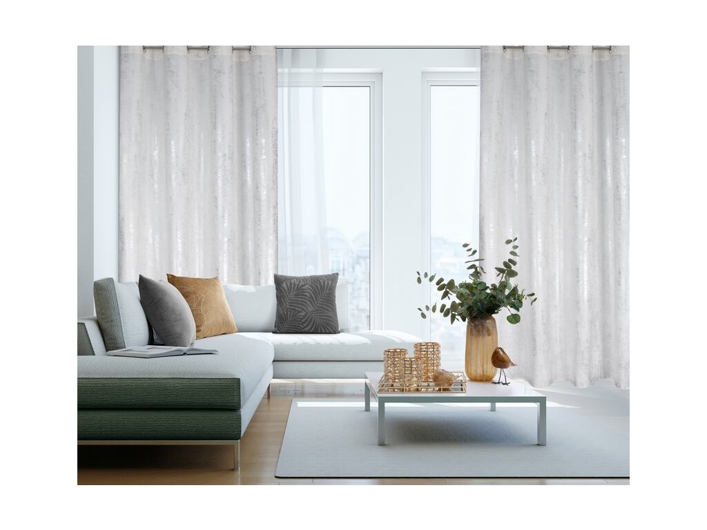 Záves RENIA s modernou lesklou potlačou na mäkkej zamatovej tkanine dodá vášmu interiéru elegantný a módne dekoratívny nádych.