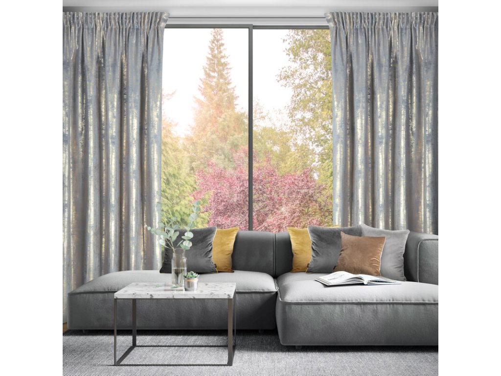 Záves RENIA s modernou lesklou potlačou na mäkkej zamatovej tkanine dodá vášmu interiéru elegantný a módne dekoratívny nádych.